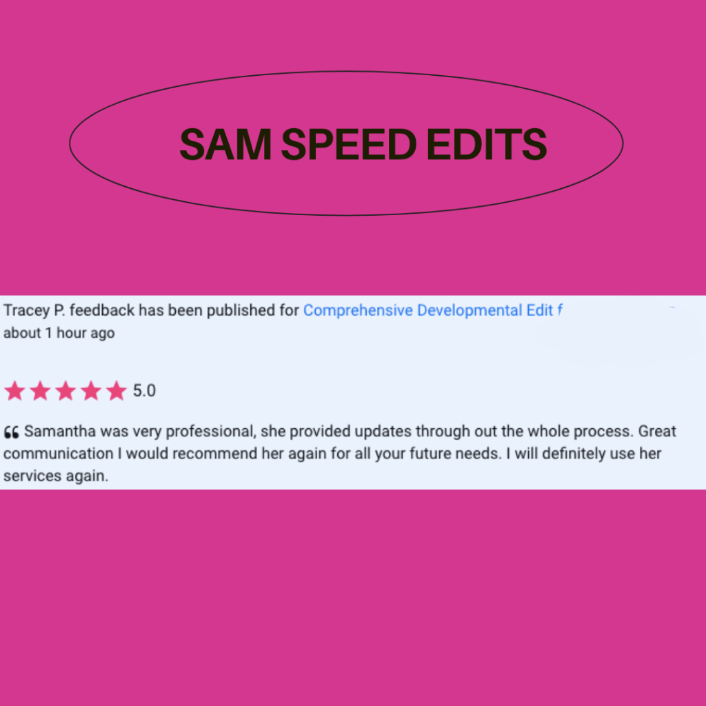Debut author Tracey P. and I worked together on her adult contemporary romance novel. Tracey’s draft clocked in at just under 100k words and was the longest single draft I’ve yet worked with! Working with her was fantastic and I look forward to future drafts of this work as she works toward publication!